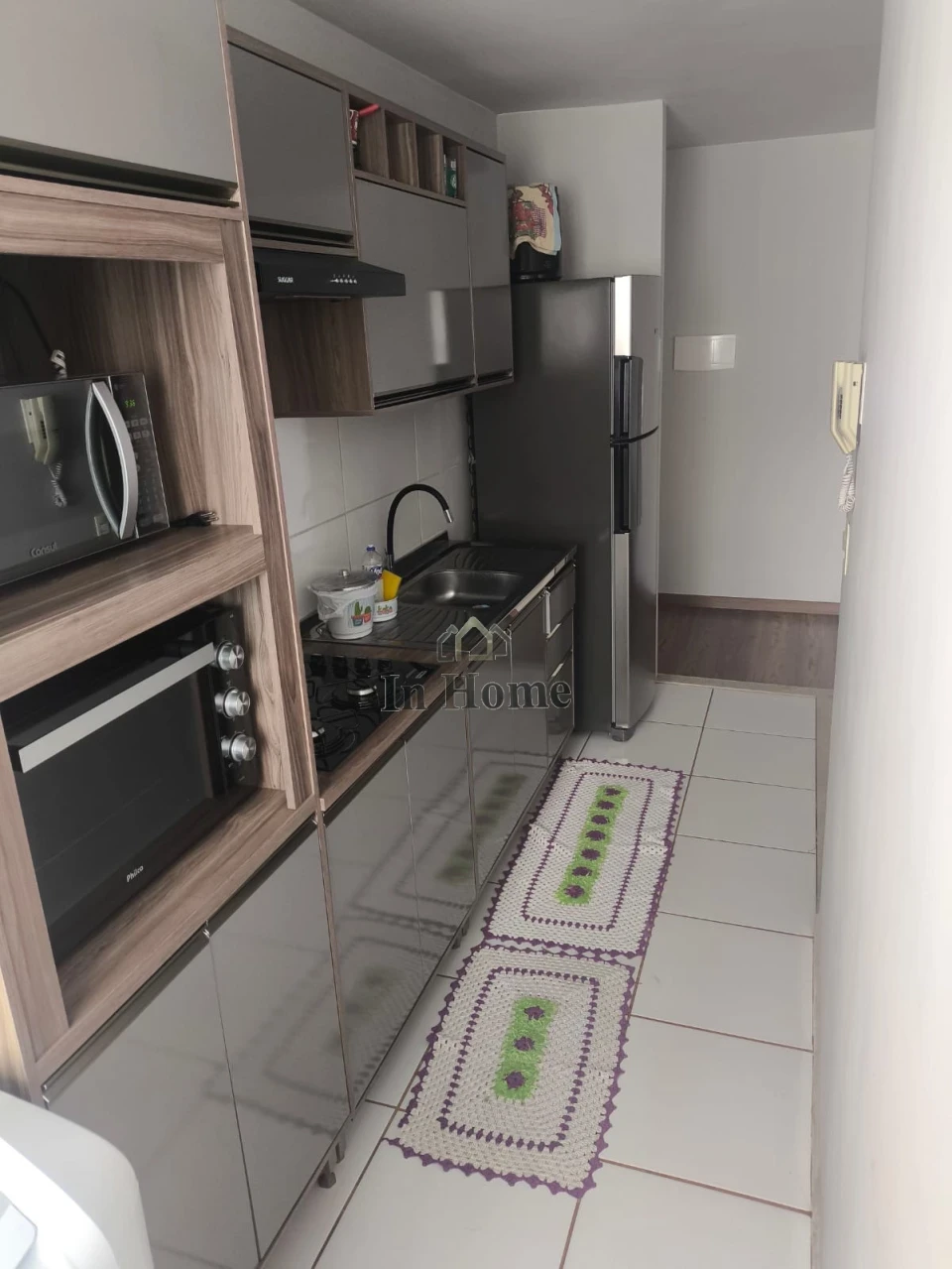 São 2 dormitórios, sala, cozinha, banheiro, área de serviços, sacada com churrasqueira, vaga de garagem coberta.